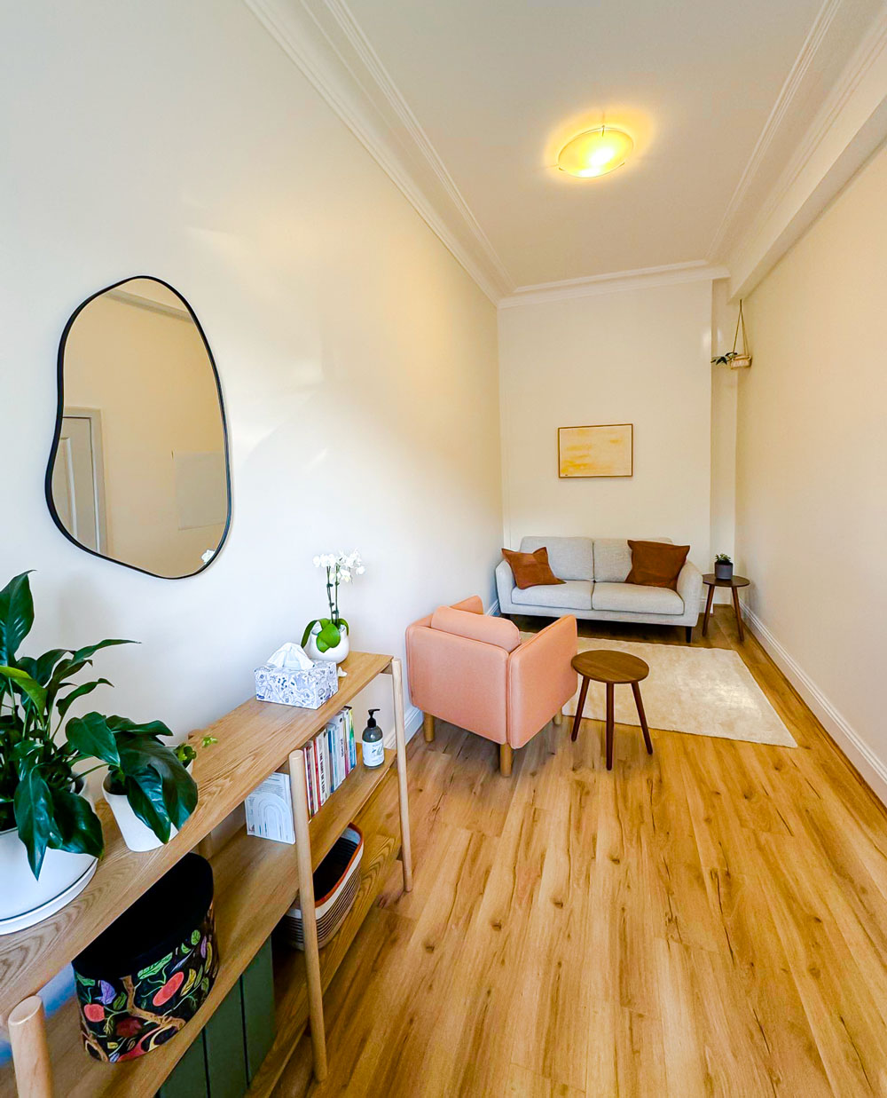 Freshly painted interiors, new flooring, high-quality soundproofing, air conditioning, and a modern, welcoming aesthetic create the ideal setting for therapy.